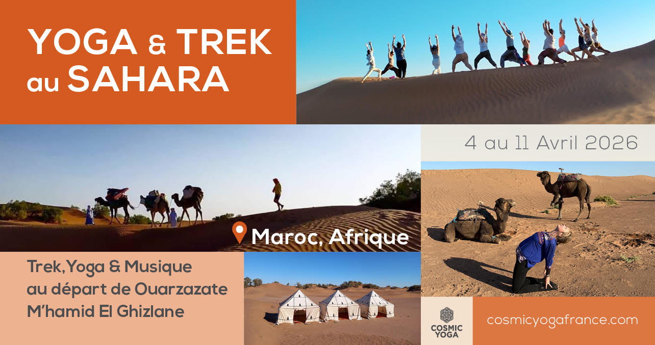 Cheminer au rythme du désert avec Cosmic Yoga France durant une semaine voici ce qu’Eva Peel, professeure de Yoga, musicienne et sonothérapeute vous propose pour la 2é année consécutive en compagnie des nomades de la région de Ouarzazate ![]()