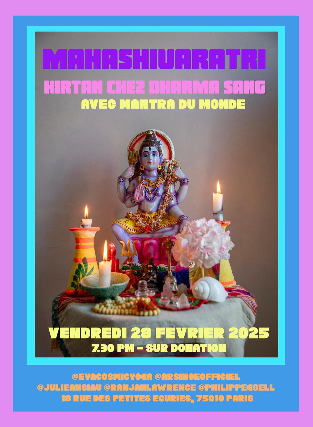 Venez célébrer SHIVARATRI avec l’association Cosmic Yoga France au Temple Dharma Sang.